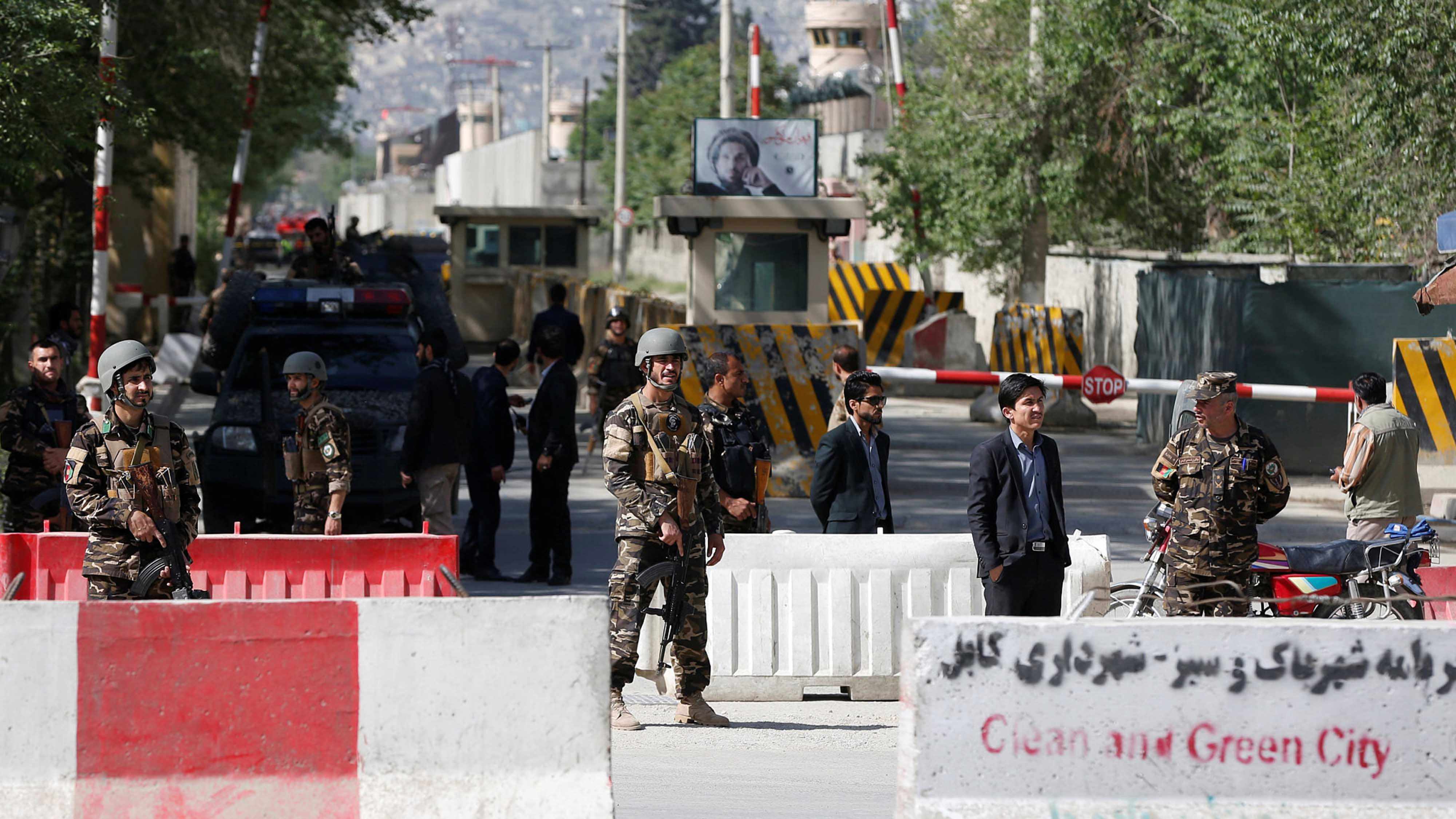Afghan security forces are seen at the site of the second blast in Kabul, Afghanistan, on April 30, 2018. /Reuters Photo