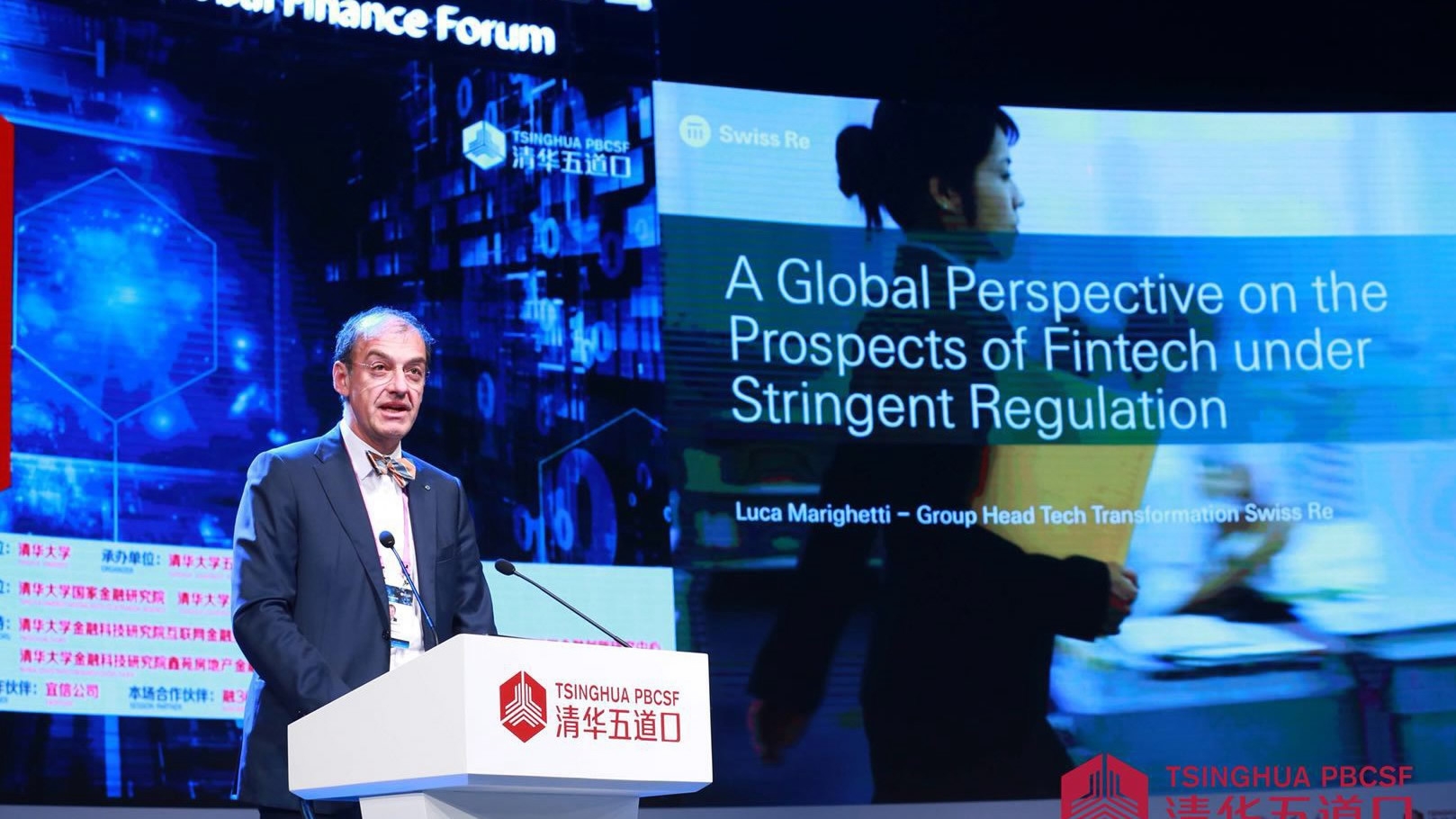 Marighetti, Swiss Re's head of tech transformation, was addressing the 2018 Tsinghua PBCSF Global Financial Forum, a two-day event held by the PBC School of Finance at Tsinghua University.