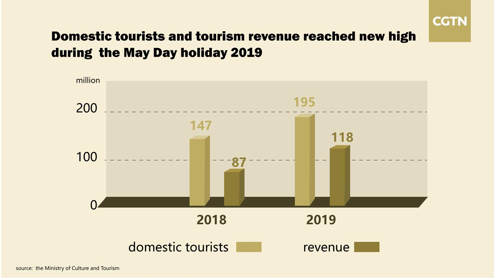 During the past holiday, there were 195 million domestic tourists in China, an increase of 13.7 percent from the previous year. Tourism revenues reached 118 billion yuan (17.3 billion U.S. dollars), marking a growth of 16.6 percent, according to data released by the Ministry of Culture and Tourism (MCT).