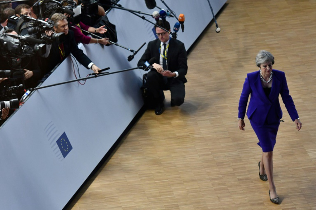 Britain's Prime Minister Theresa May, arriving for the second day of summit talks in Brussels, notes that both sides remained at odds over a "backstop" plan to avoid frontier checks in Ireland. /AFP Photo