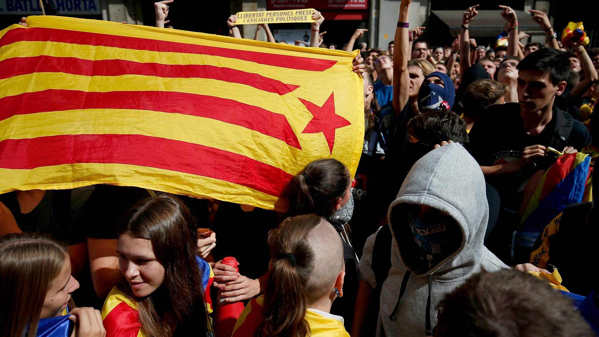 Hundreds of activists, many covering their faces with scarves, occupied the high-speed railway tracks at Girona station in the early morning, demanding that the regional government push ahead with independence.
