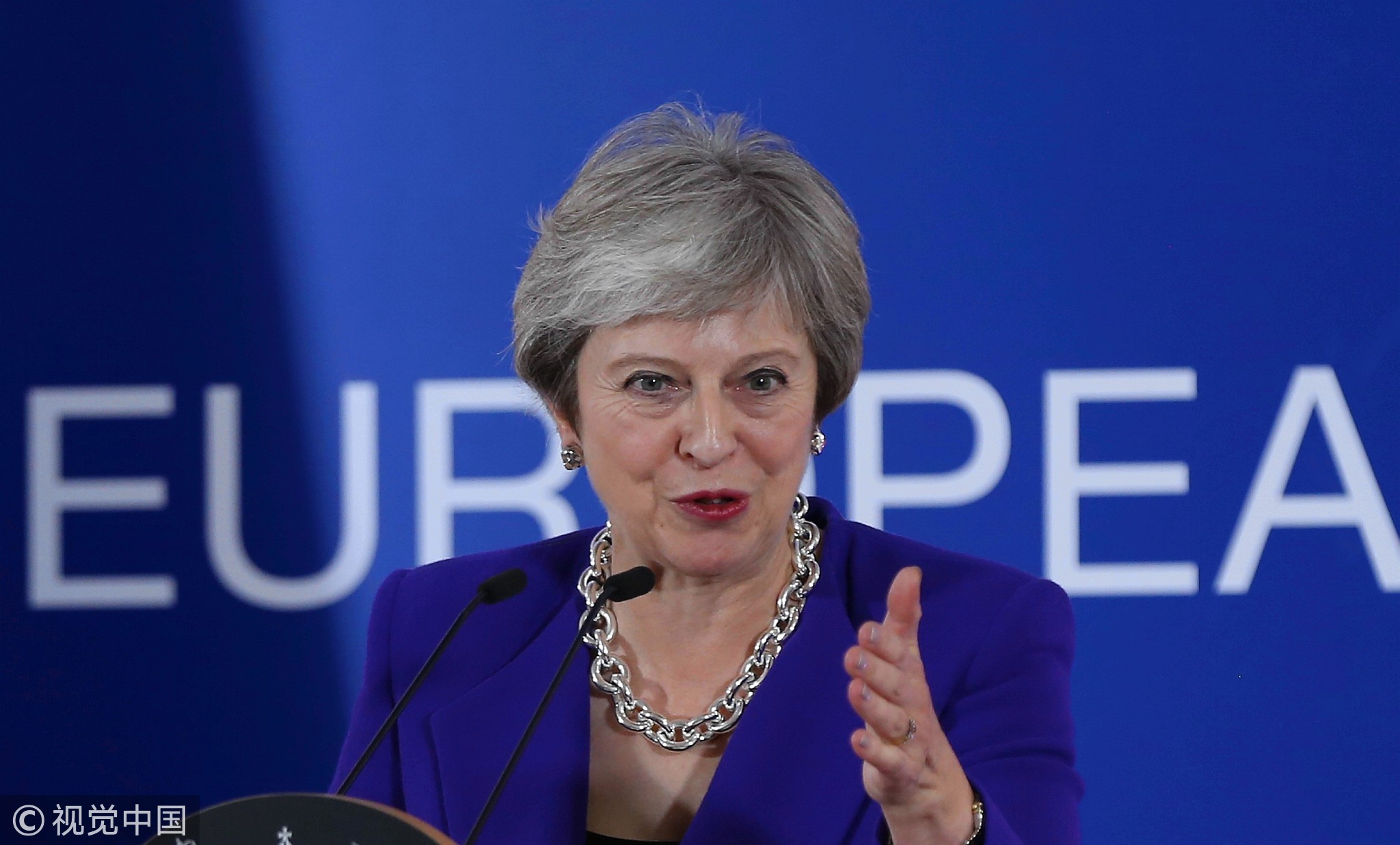 British Prime Minister Theresa May holds a press conference after the second day of European Union leaders summit at the European Council in Brussels on October 18, 2018. /VCG Photo