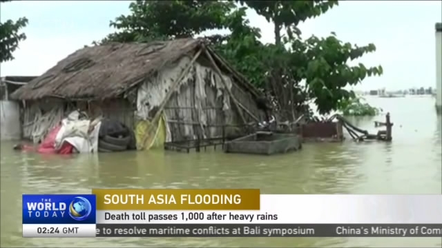 Intense flooding in South Asia enters its third week and at least a thousand people have been killed, and 11 million affected. The death toll will likely continue to rise throughout Bangladesh, India, and Nepal, as emergency crews continue to find bodies and take survivors to shelters. Monsoon rains began two weeks ago, killing hundreds and destroying hundreds of thousands of homes. That's on top of the 350 people killed in floods in South Asia in July. The region is expecting more heavy rain on Sunday and Monday.