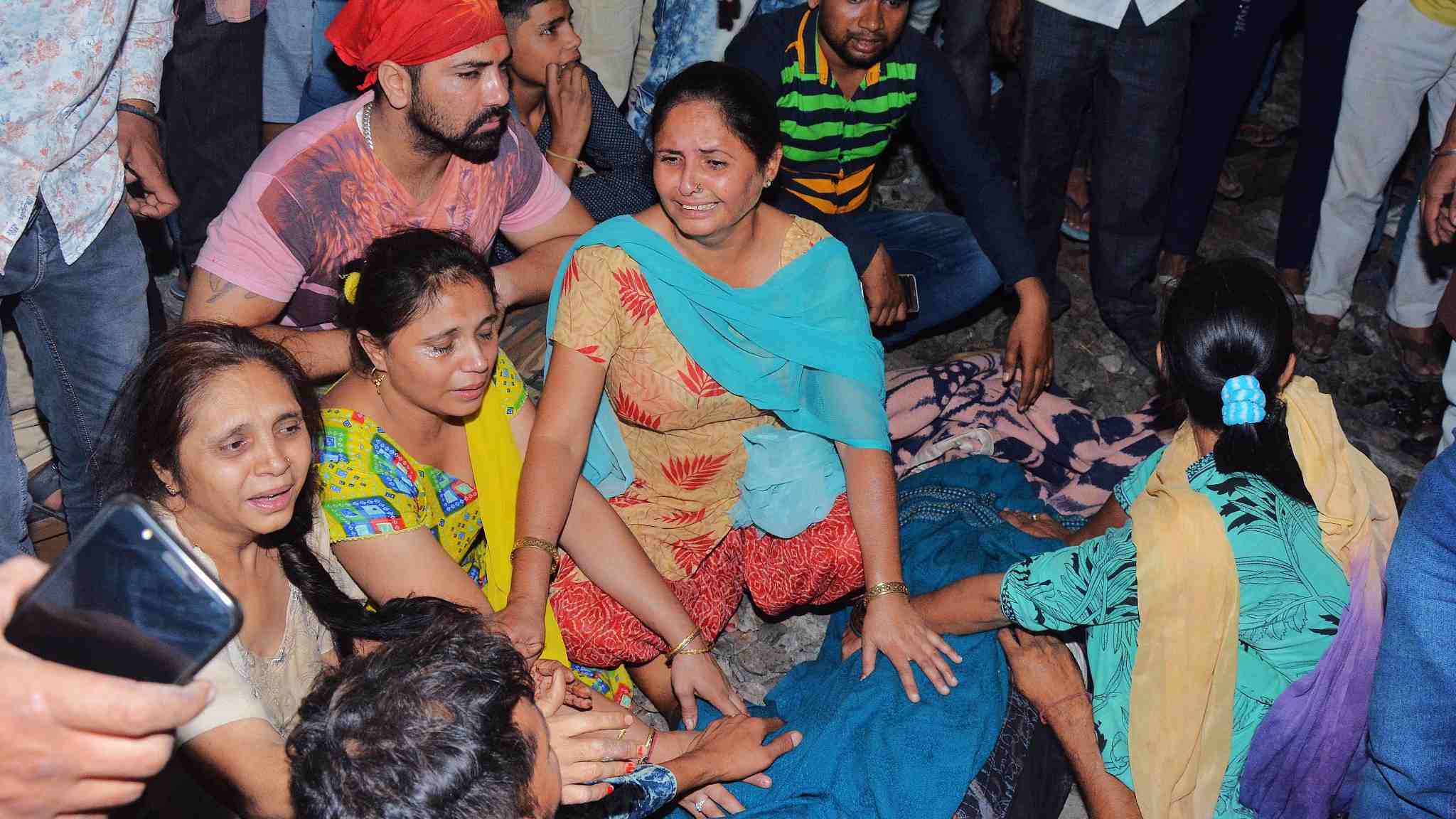 Relatives of the victims who died in the train accident mourn their demise in Amritsar, India, Oct. 19, 2018./VCG Photo