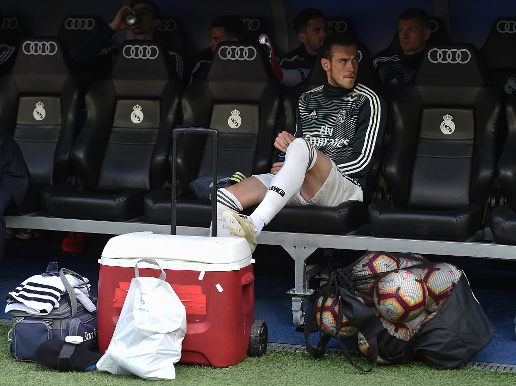 Gareth Bale is not even given the chance to say a likely goodbye as he sits on the bench the whole game against Real Betis at Bernabeu on May 19, 2019. /VCG Photo