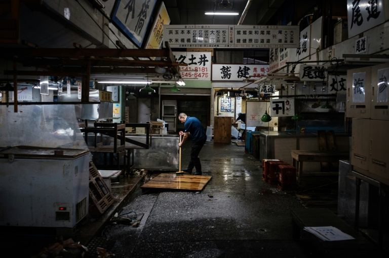 The last clean of his shop at Tsukiji fish market. /AFP Photo