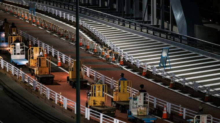 A total of 2,600 turret trucks and forklifts will drive about 2.3 kilometers (1.4 miles) from Tsukiji to the new site over a period of five days, according to the Tokyo metropolitan government.
