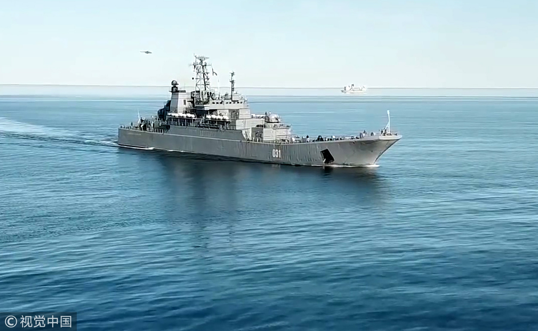 The Russian Navy Project 775 major amphibious assault ship Alexander Otrakovsky off the coast of Chukotka Autonomous Area during the Vostok 2018 military exercise, September 12, 2018. /VCG Photo