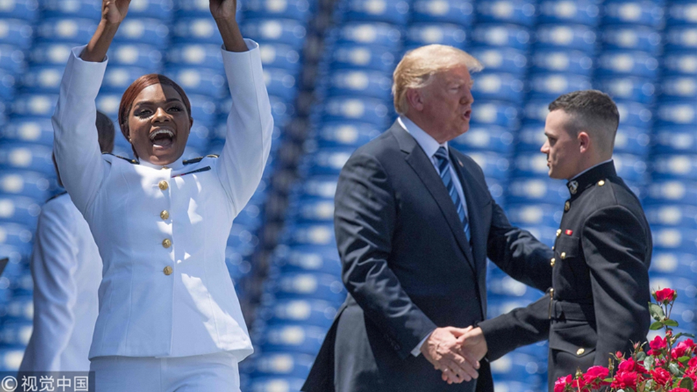 US President Donald Trump addressed and shook hands with the newly commissioned officers after delivering his commencement speech to the graduates along with their friends and families. /VCG Photo