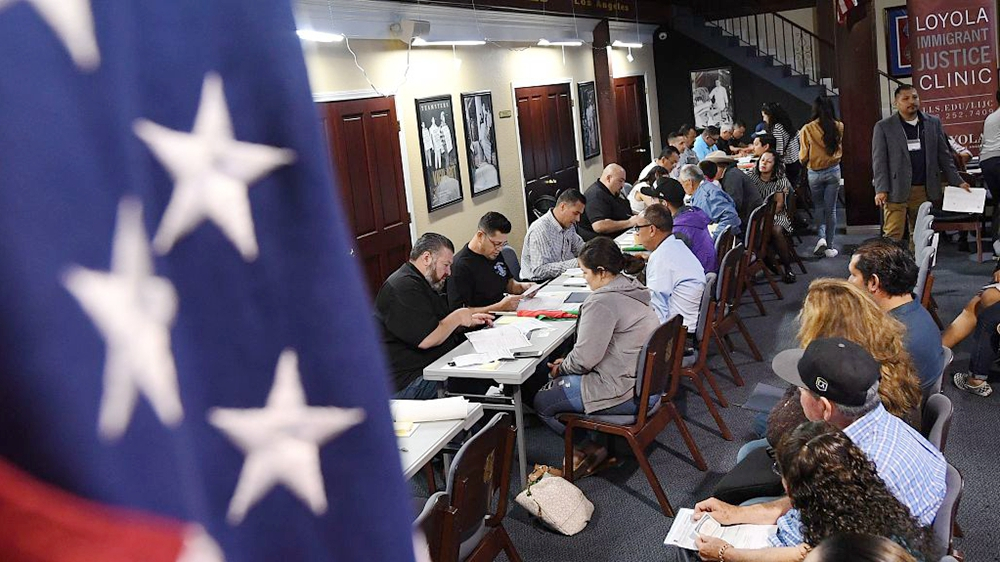 (Top image: South American migrants wait to receive free legal advice on obtaining U.S. citizenship at an event organized by the Teamsters Union – a labor union in U.S., in Los Angeles, March 30, 2019. /VCG Photo)