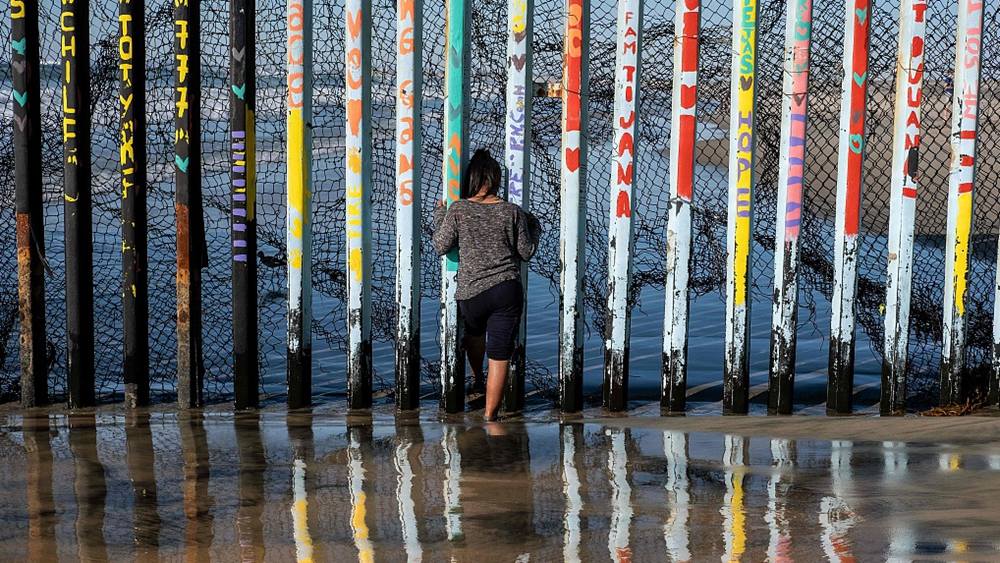 A girl from El Salvador, part of the Central American migrants hoping to reach the U.S., looks through the U.S.-Mexico border fence in Playas de Tijuana, December 29, 2018. /VCG Photo
