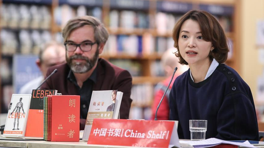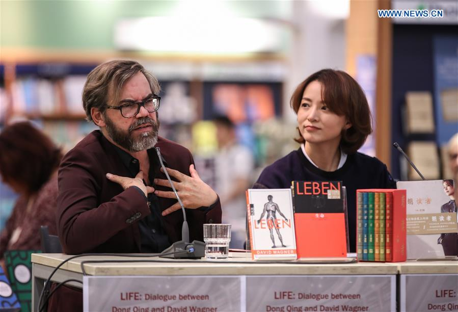 (Cover: Dong Qing (R), renowned Chinese anchorwoman, the producer of the program "Readers" as well as the chief editor of the book "Readers", and German writer David Wagner, attend a book reading at a Thalia bookstore, Berlin, Germany, October 11, 2018. /Xinhua Photo)