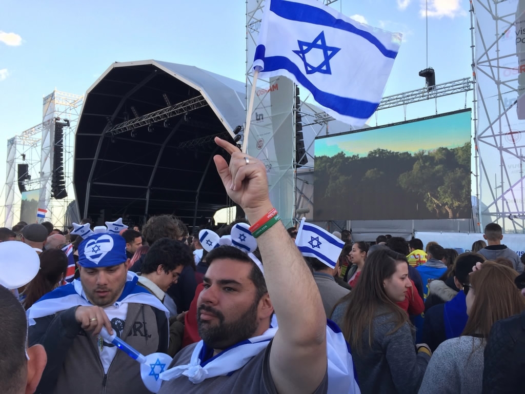 The Israeli contingent at the Eurovision Village just before the show /CGTN Photo