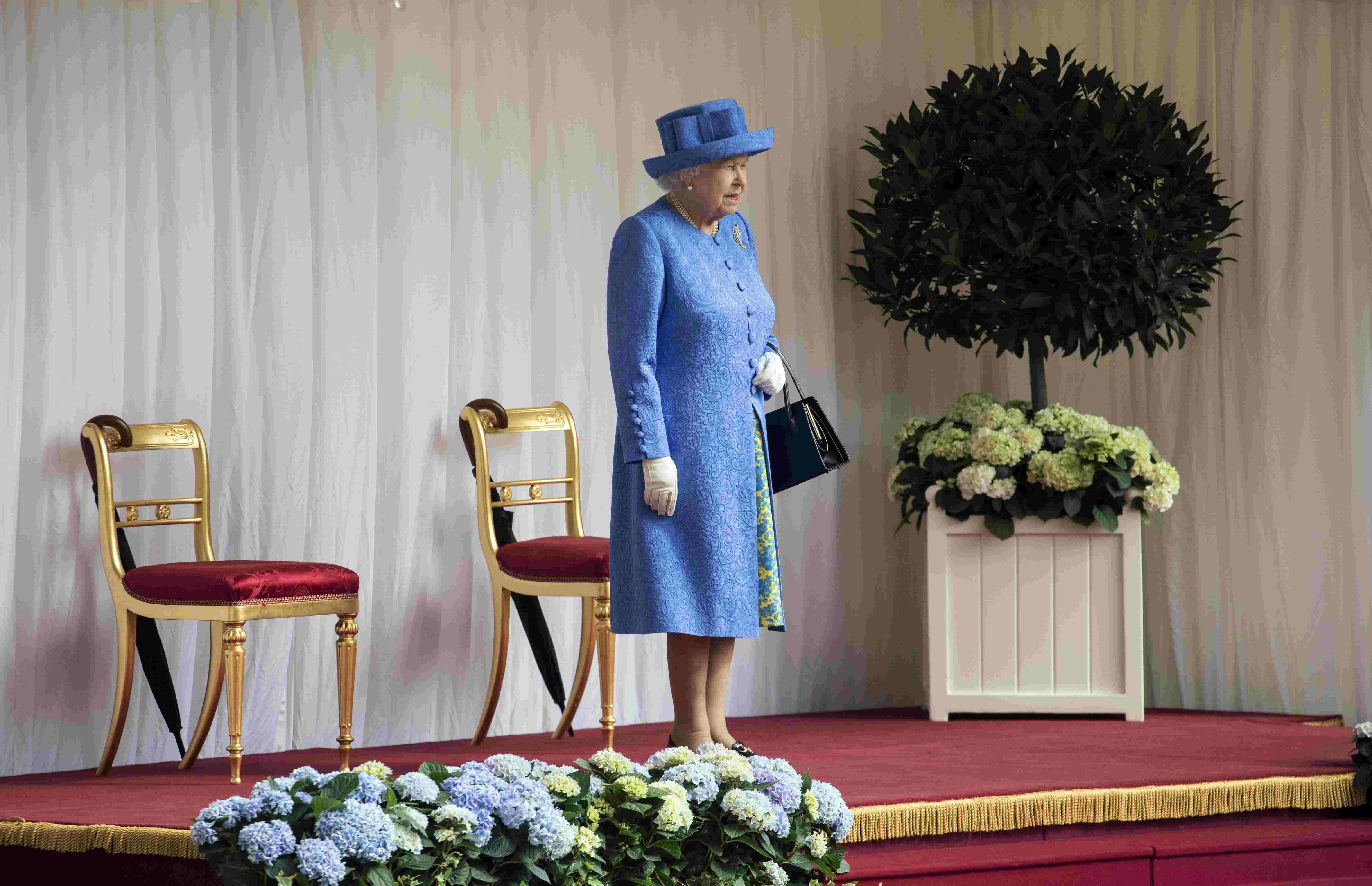 Queen Elizabeth II awaits the arrival of US President Donald Trump and first lady Melania. /AP Photo