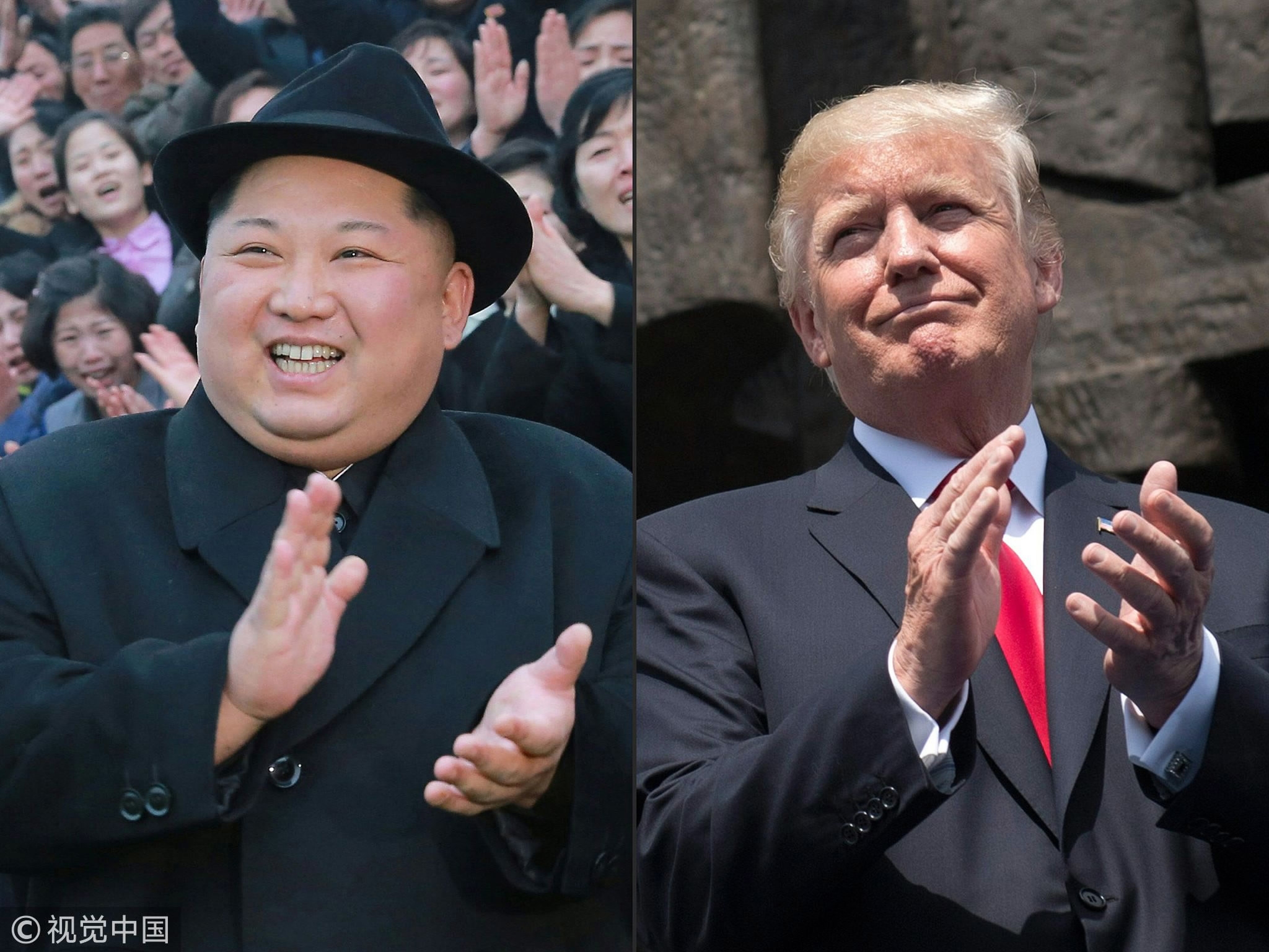 DPRK leader Kim Jong Un (L) visits the newly-renovated Pyongyang Teachers' University on January 17, 2018. US President Donald Trump (R) applauds as he stands in front of the Warsaw Uprising Monument on Krasinski Square during the Three Seas Initiative Summit in Warsaw, Poland, on July 6, 2017. /VCG Photo