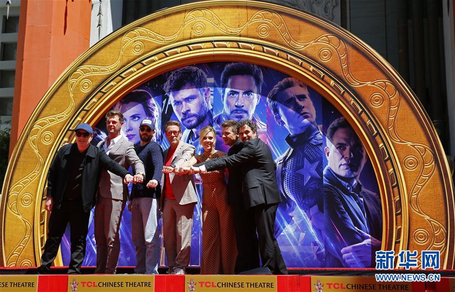 Several cast members of the “Avengers: Endgame” took part in an age-old ceremony in Hollywood on April 24, placing their “superhero” handprints in cement outside the historic TCL Chinese Theatre. /Xinhua Photo
