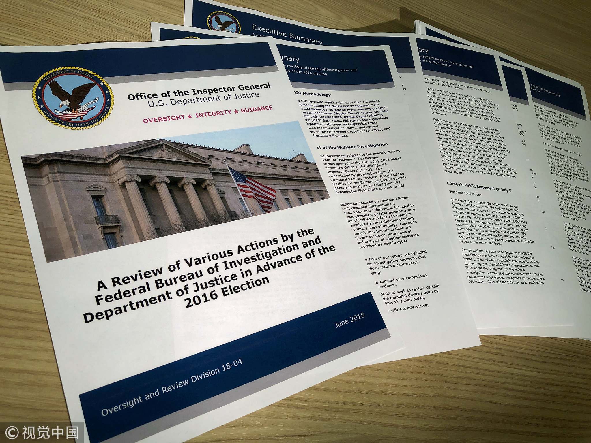 The 500-page report is seen shortly after its release in Washington, June 14, 2018. /VCG Photo