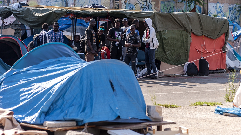 African migrants at a makeshift camp for migrants and refugees in Rome, July 12, 2018. /VCG Photo