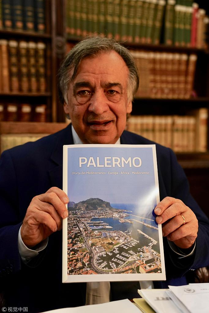 Leoluca Orlando, current mayor of Palermo speaks to a Chinese news media in Palermo, Italy, March 17, 2019. /VCG Photo