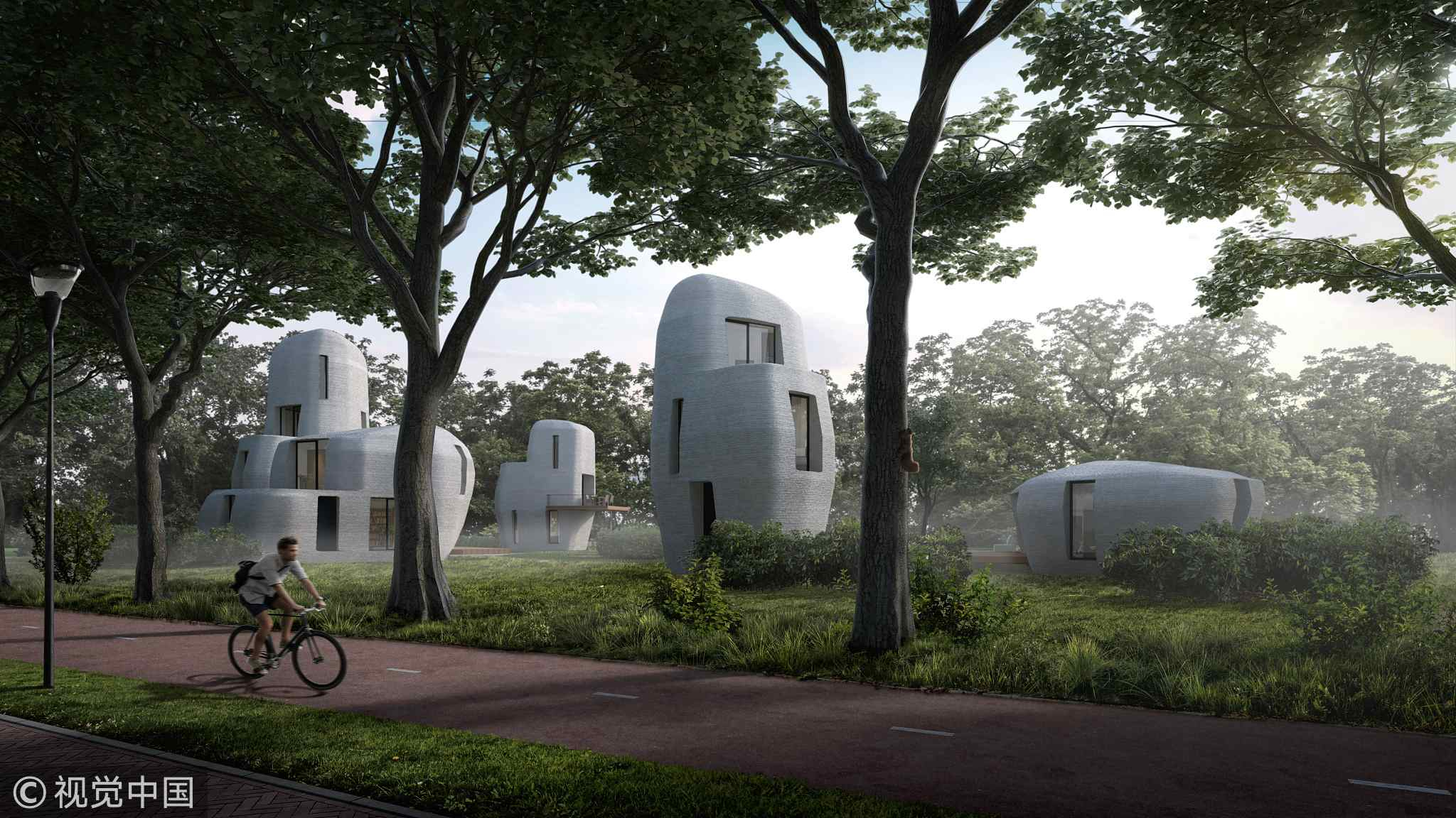 (Top image: The designs of the 3D-printed housing complex /VCG Photo)
