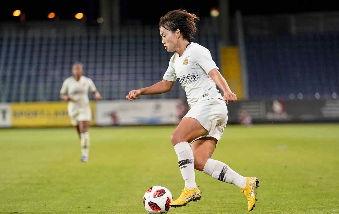 Wang Shuang dribbles during the UEFA Women's Champions League clash between St. Polten and PSG, September 12, 2018. /VCG Photo