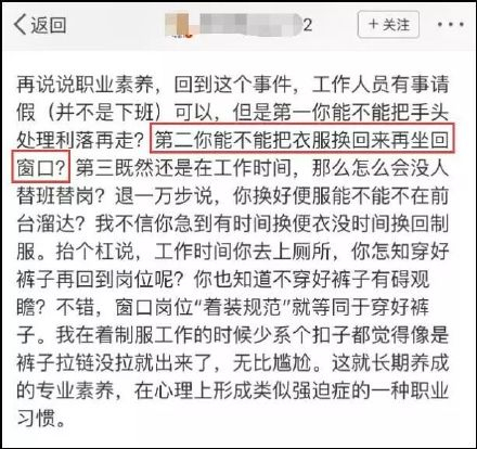 It turns out the female employee was come at her desk helping someone in line even after she was already off work. The man who took the picture chose to comment without knowing the context and posted in without her consent.