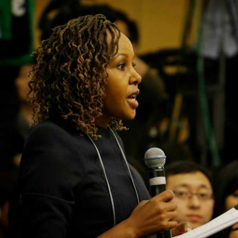 Jane Kiyo raises a question to Foreign Minister Wang Yi during a press conference. /CGTN Photo