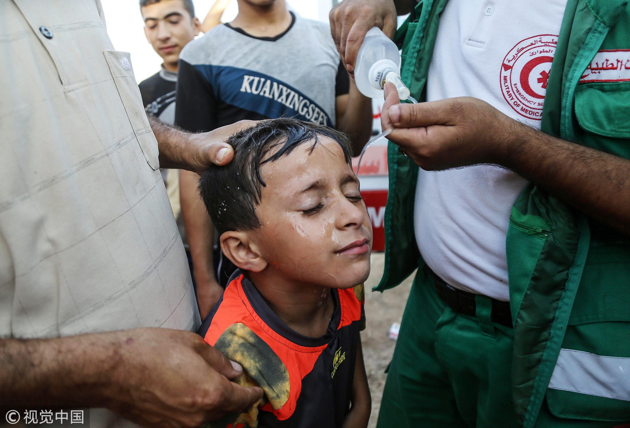A wounded Palestinian protester receives treatment after Israeli security forces opened fire at protesters on Gaza-Israel border, August 10, 2018. /VCG Photo