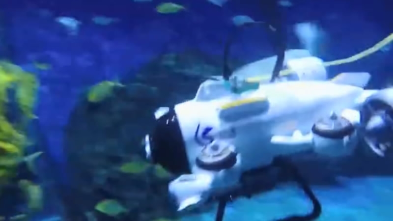 A tell-you-what-it-is function embedded in underwater drones is expected to fulfill children's curiosity at aquariums.
