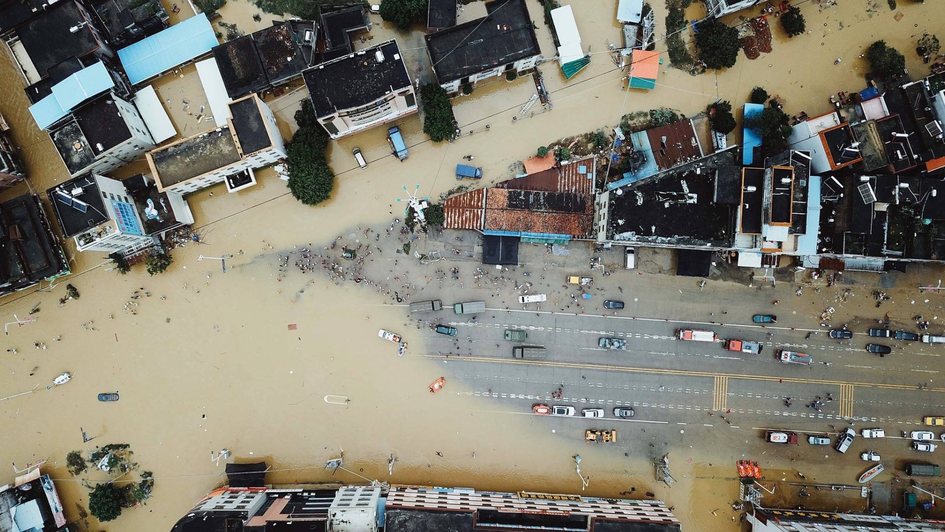 Aerial views taken above Huizhou in China’s southern Guangdong Province show the damage to the city from torrential rain. /VCG Photo