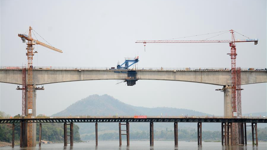 The first bridge span of the China-Laos railway has been built over the Mekong River in northern Laos, the Laos-China Railway Co., Ltd., in charge of the construction and operation of the railway, said on Tuesday.