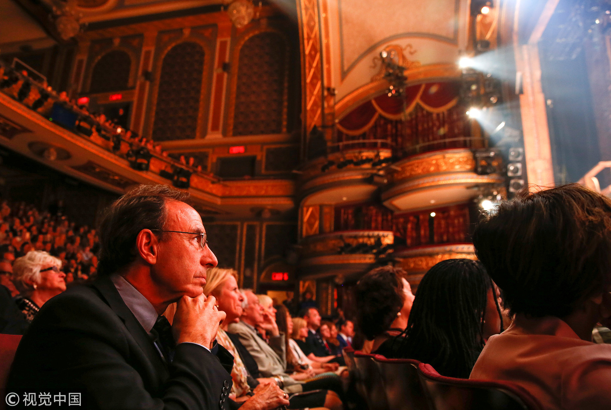 July 12, 2016: Members of the audience watch Hillary Clinton speak after the special performance of the Broadway musical "Hamilton" in, Manhattan, New York, US. /VCG Photo