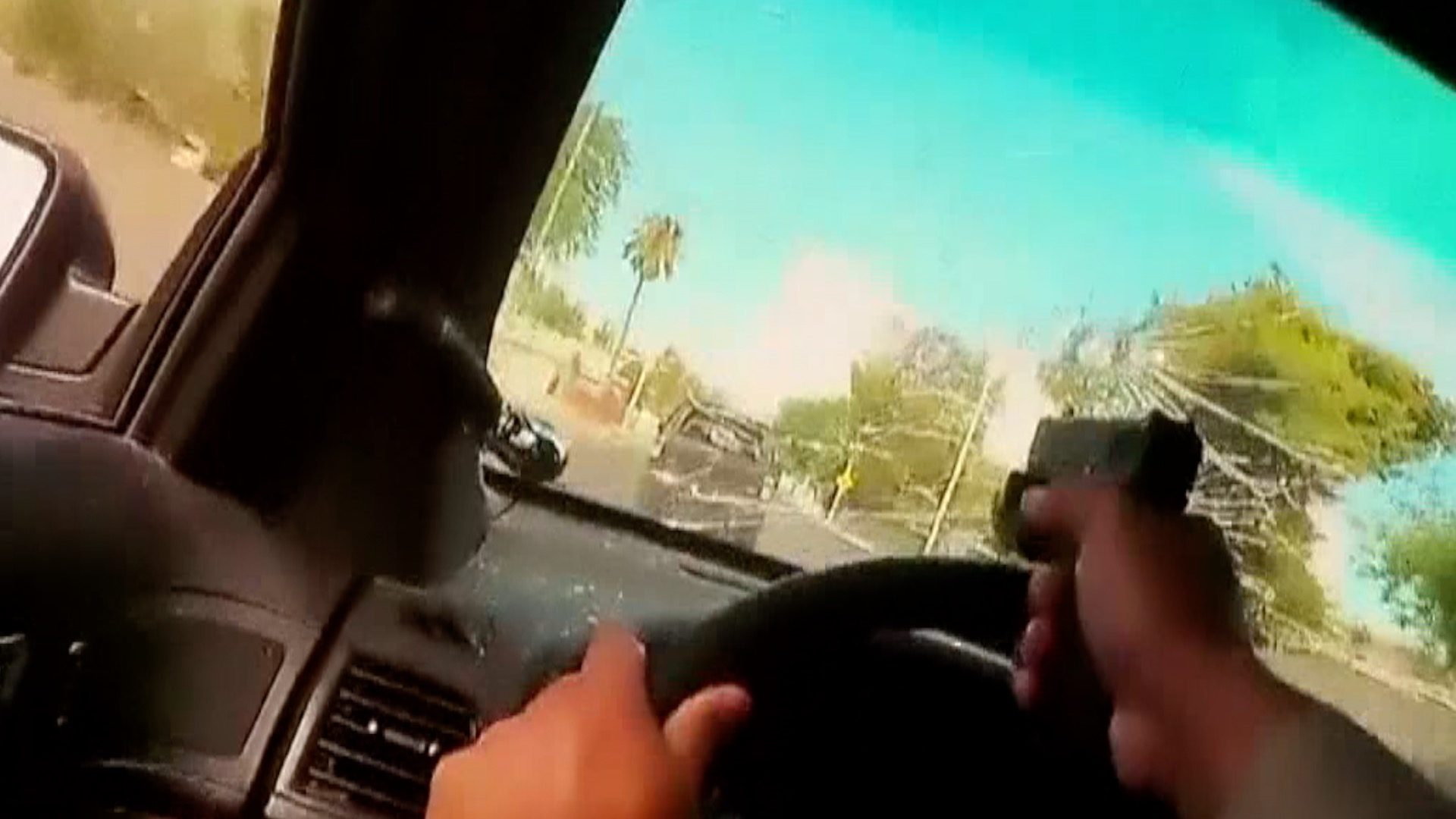 Las Vegas police released a video of a shooting involving a police officer who fired his gun through his windscreen during a pursuit. According to the police, officers were responding to reports of an assault with a gun, and one of them fired off 31 rounds. The suspects also fired multiple rounds.