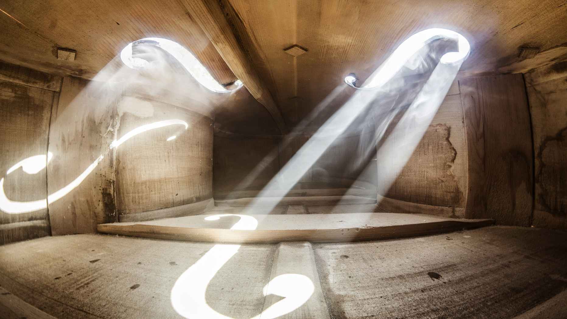 The wooden panels of the instruments resemble the walls of a room and the holes on panel appear to be windows on the ceiling as the light beams through the holes. /VCG Photo