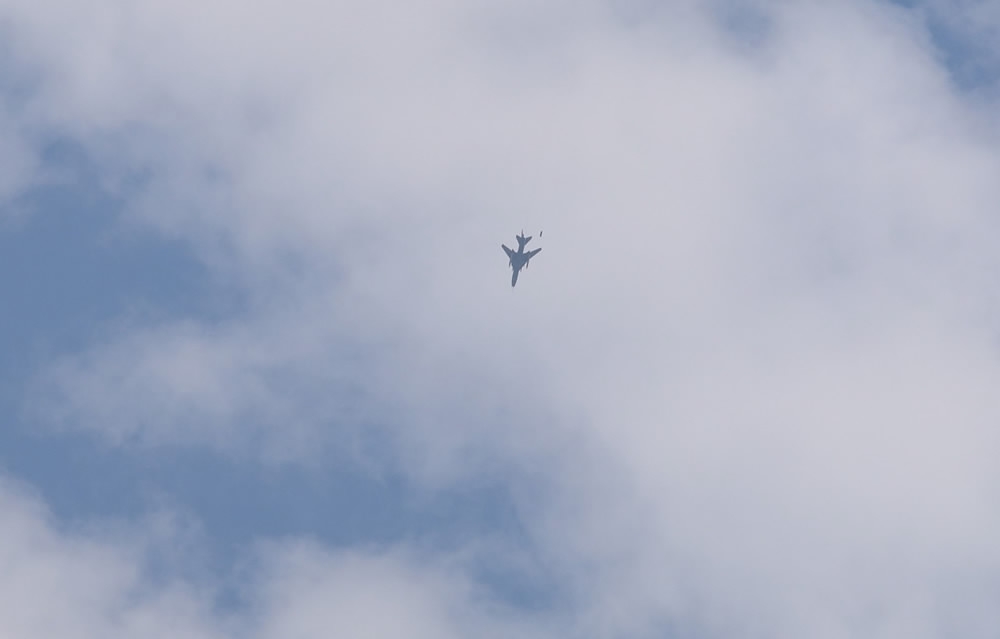 A fighter jet is seen during airstrikes of Syrian government forces over Homs, Syria, April 29, 2018. /VCG Photo