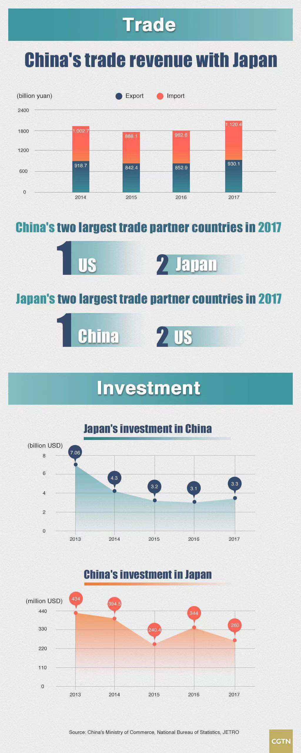 Japan was China's fourth largest trade partner in 2017, ranking after the US, the EU and ASEAN and second largest trade partner country next to the US, according to China's official data.