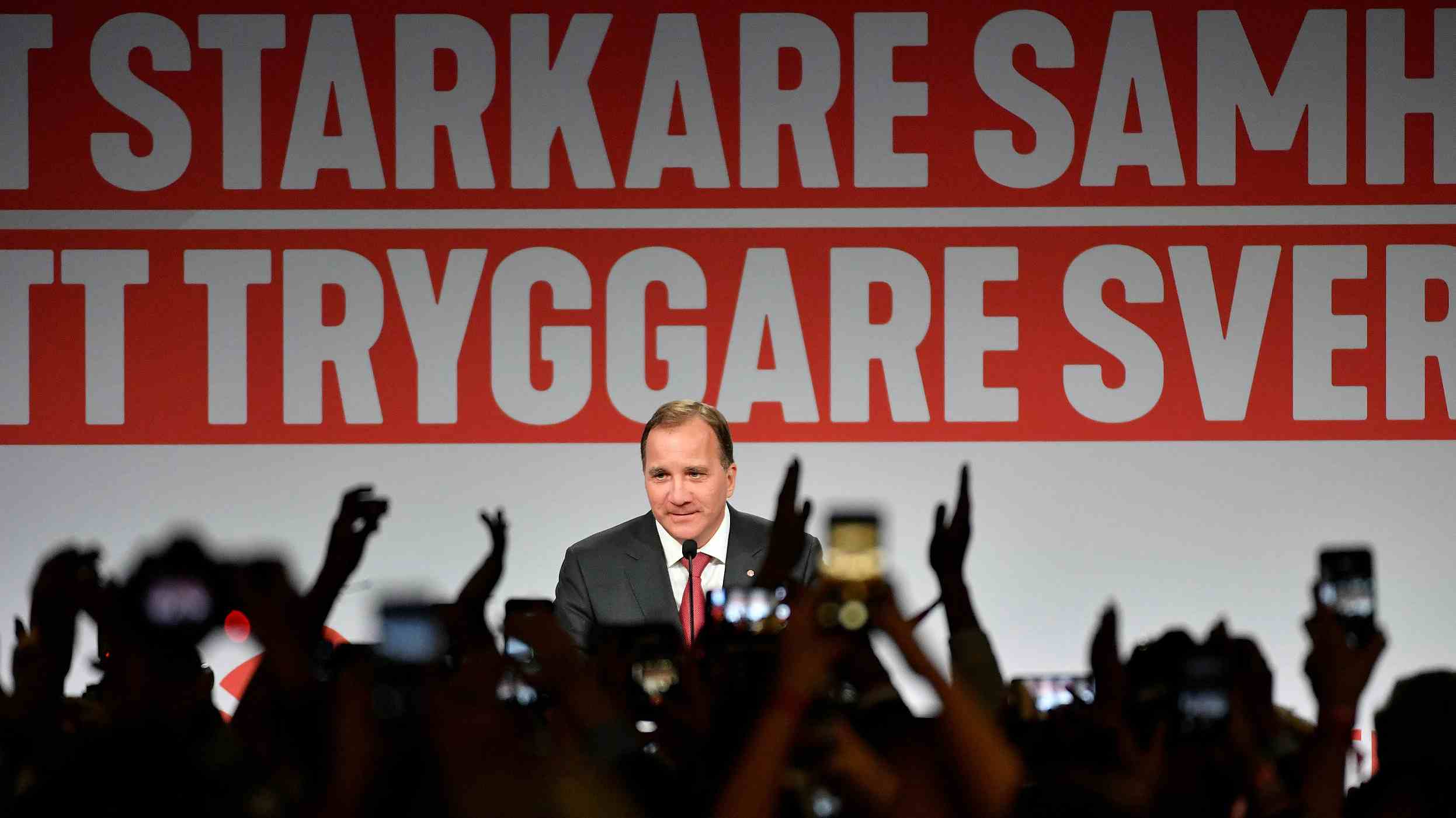 Sweden's Prime Minister and leader of the Social Democrats Stefan Lofven speaks at an election party in Stockholm, Sweden, September 9, 2018. /VCG Photo