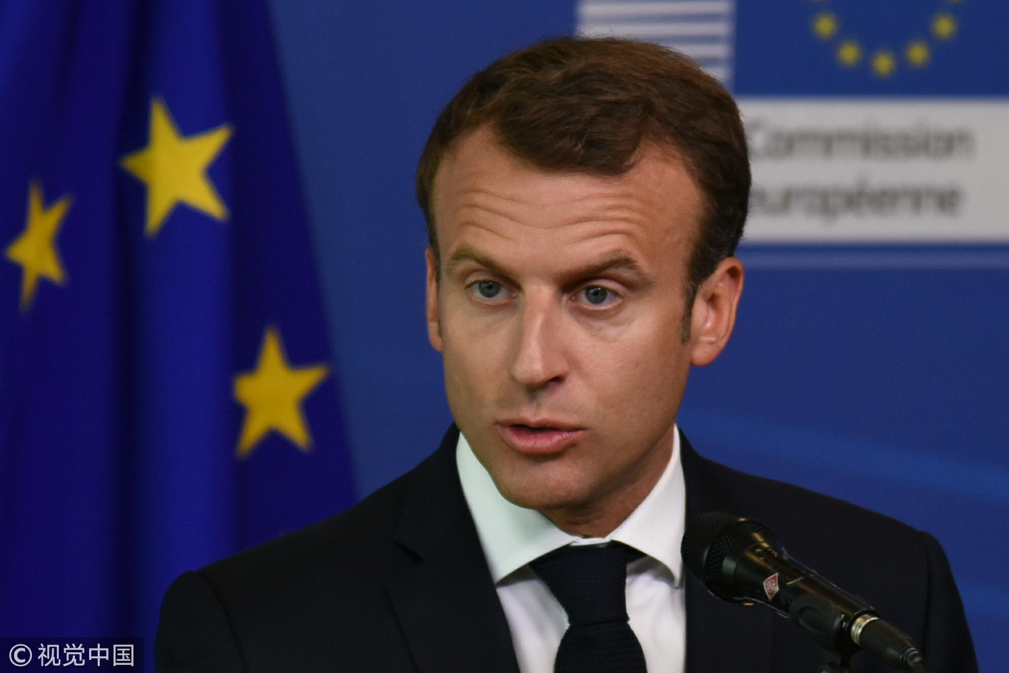 French President Emmanuel Macron talks to the press after an informal summit at the EU Commission in Brussels, Belgium, June 24, 2018. /VCG Photo