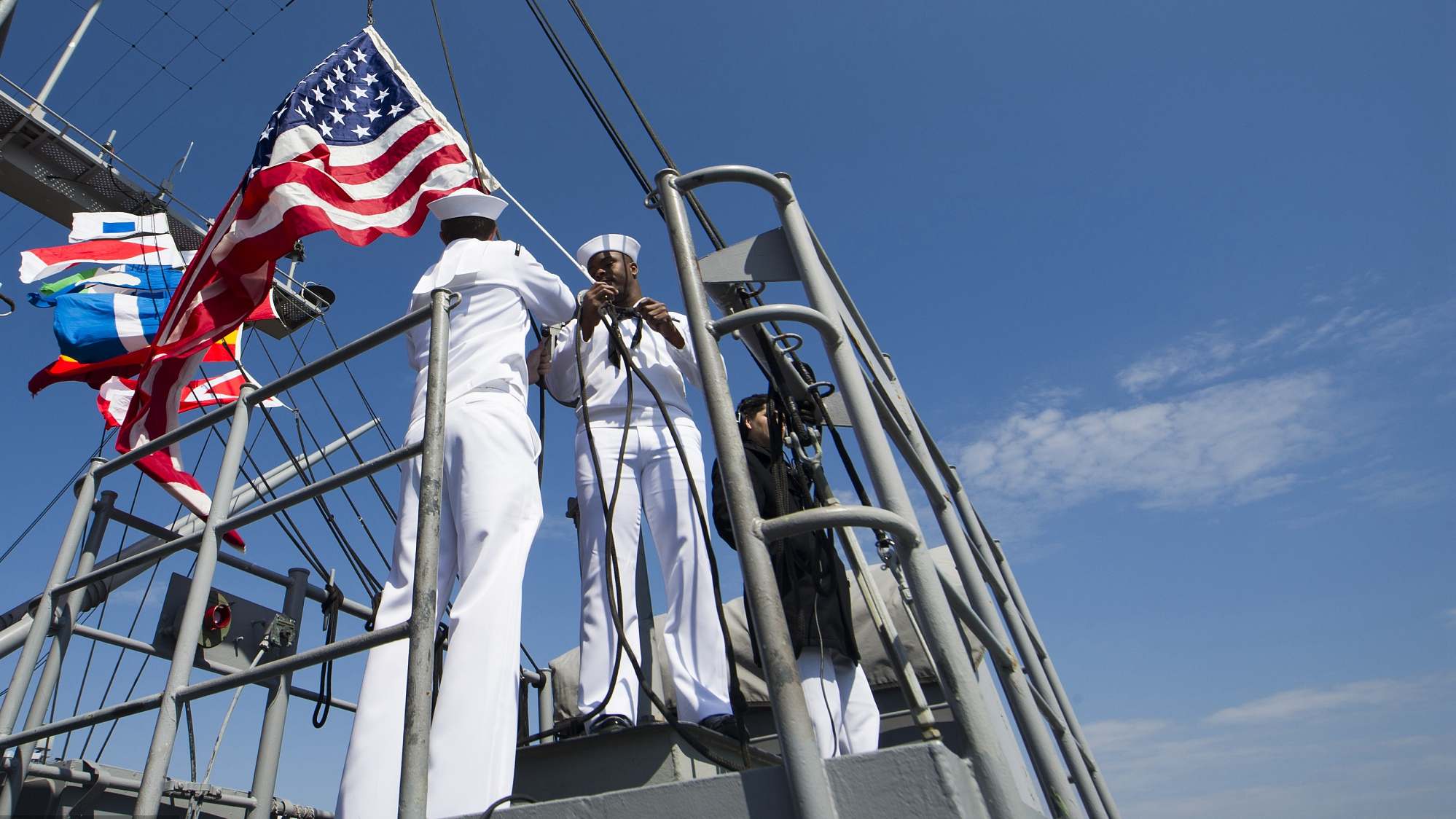 About 6,500 sailors assigned to the Harry S. Truman Carrier Strike Group are departing Norfolk, Virgina, US, for a deployment to Europe and the Middle East, April 11, 2018. /VCG Photo