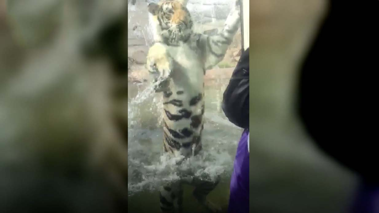 These men were posing for a picture, when a tiger surrendered to its instincts and approached them, only to be hit by reality.