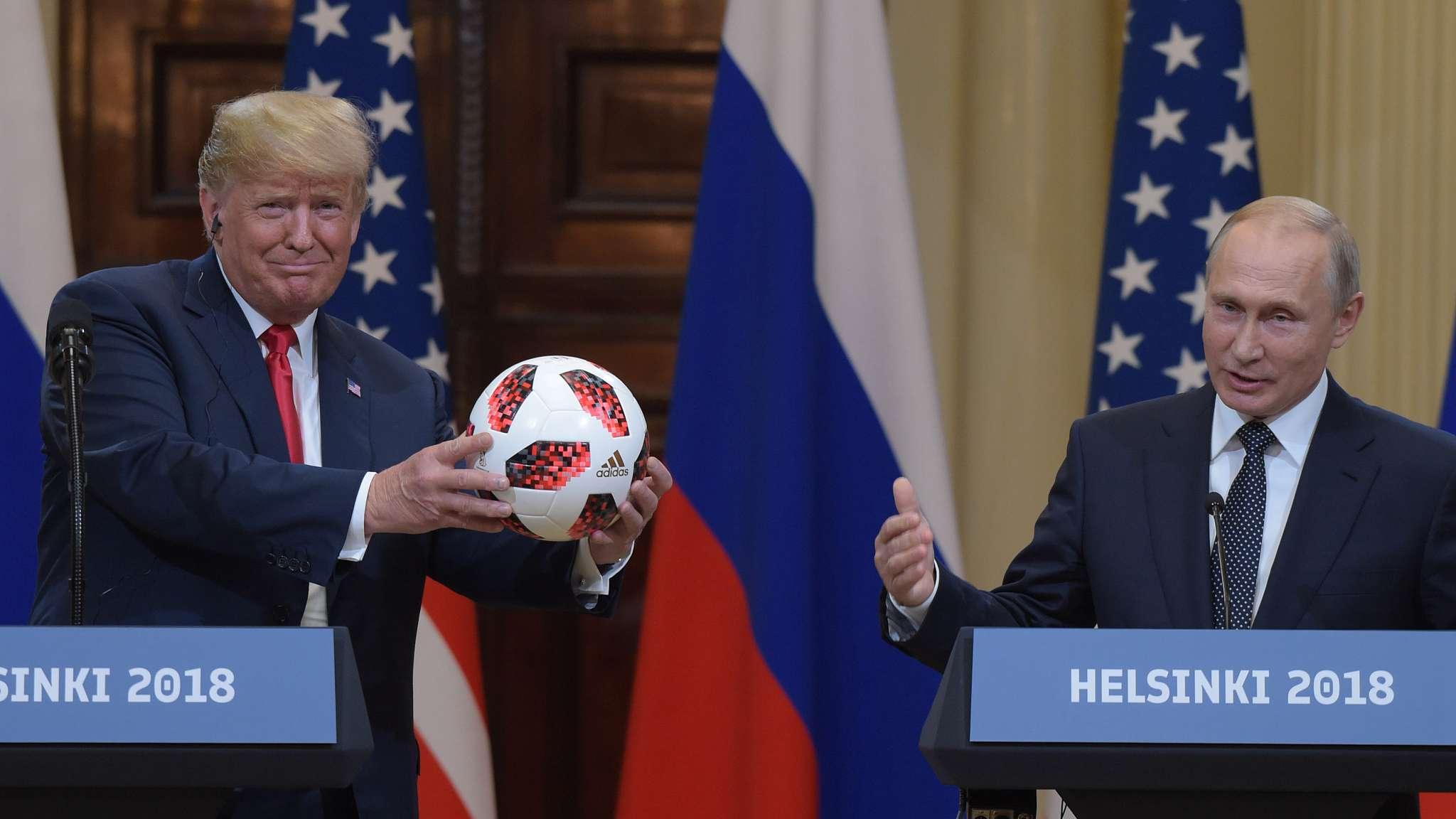 Putin spoke of the importance of the two countries working together and praised Trump, at one point interrupting the news conference to give the US president a soccer ball.