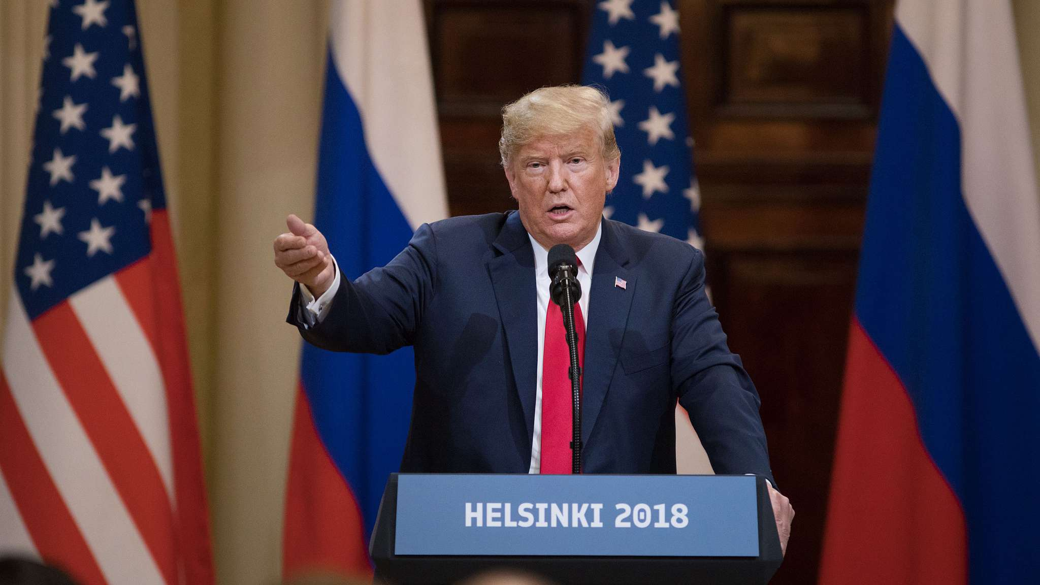 US President Donald Trump speaks during a news conference with Vladimir Putin in Helsinki, Finland, July 16, 2018. /VCG Photo