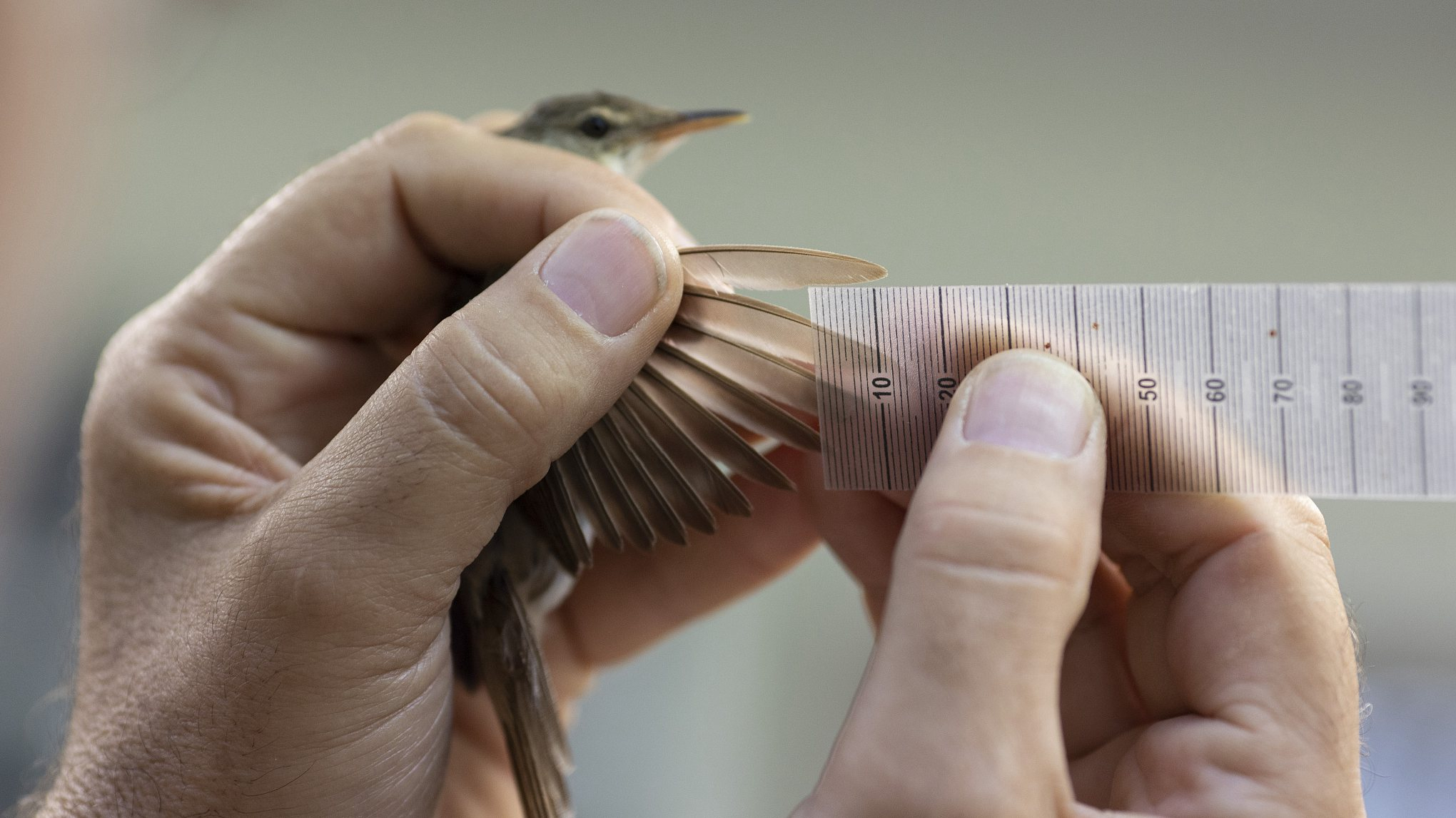 A bird ringer measures a Reed Warblers wings. /VCG Photo