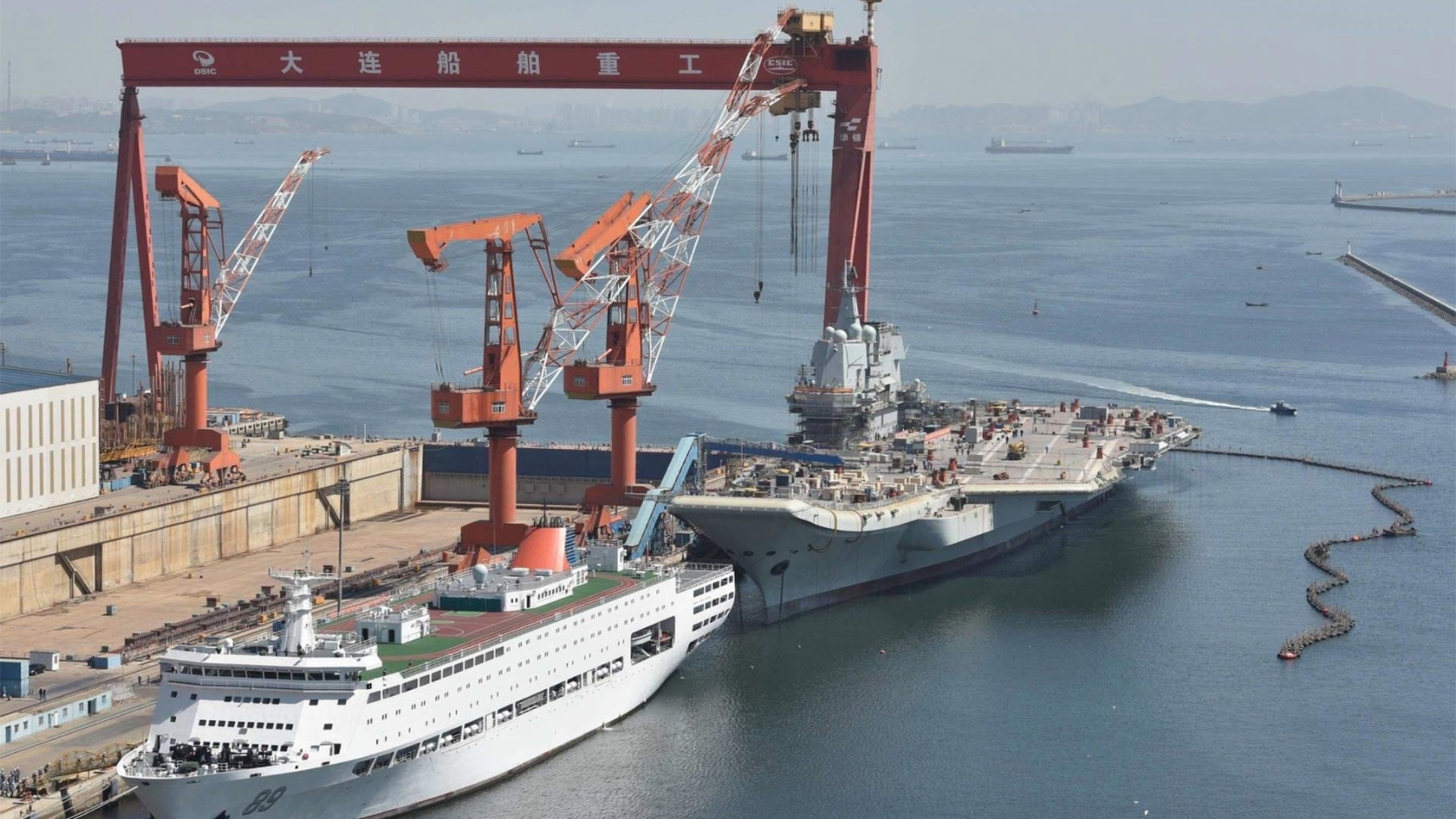 (Top image: China's first domestically built aircraft carrier at the Dalian shipyard /CGTN Photo)