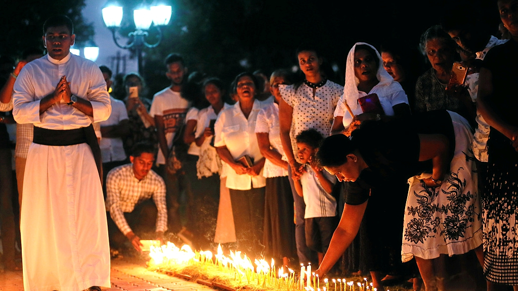 People attend the funeral of Dhami Brindya, 13, a victim of the Easter attack, Negombo, Sri Lanka, April 25, 2019. /VCG Photo