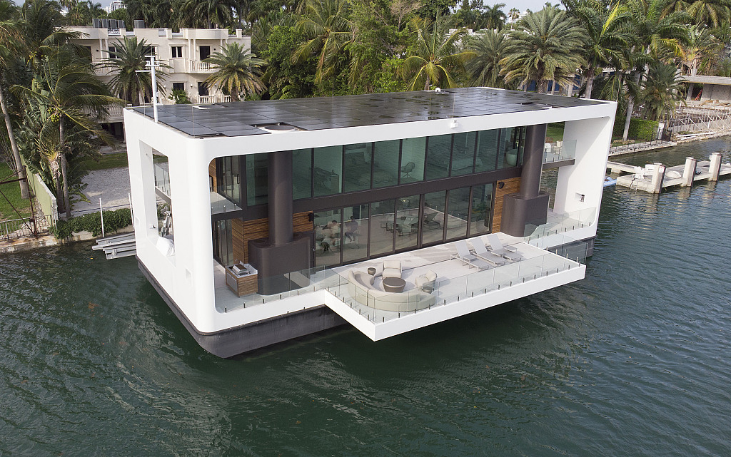 A solar-powered houseboat designed by American company Arkup to cope with rising sea levels debuted on Tuesday in Miami Beach, Florida. /VCG Photo