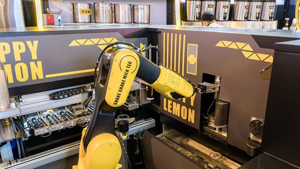 Milk tea lovers now get to enjoy the service of a robot, with the first unmanned milk tea shop opening at a shopping center in Shanghai on March 18. /VCG Photo