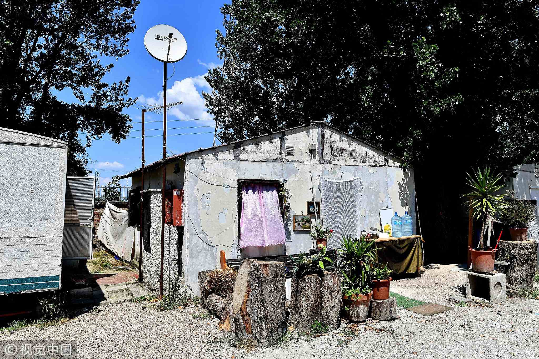 A house is pictured at the "River Village" Roma camp, managed by the Onlus Isola Verde association, June 19, 2018, on the outskirts of Rome. /VCG Photo