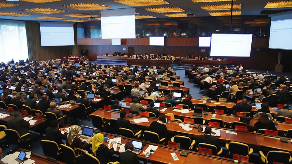 A bird's eye view of a meeting of the Governing Body on Qatar at the International Labor Organization in Geneva, November 8, 2017. /VCG Photo