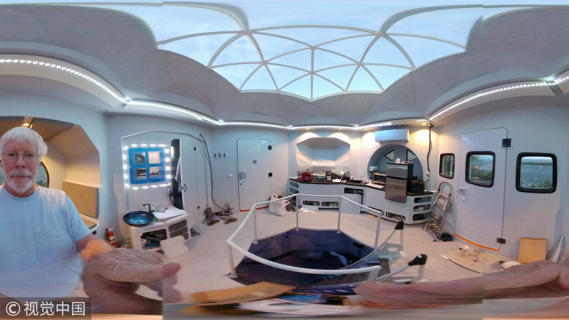 If you are bored with your room décor, you can liven things up by re-painting the wall or refurnishing your space. However, US boat architect Kurt Hughes prefers to model his house after the NASA Apollo moon mission lander. /VCG Photo